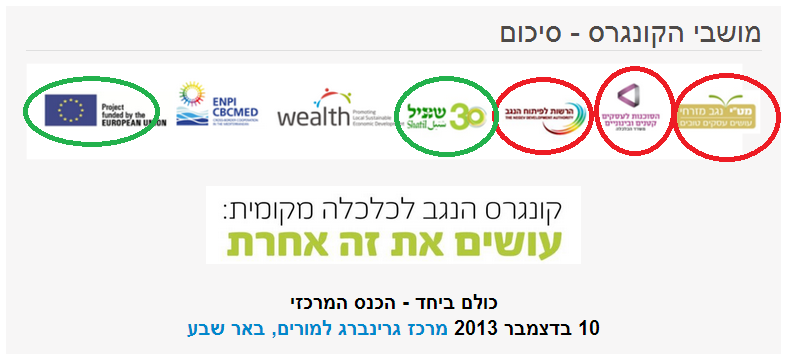 מכל בחינה שהיא, זהו אירוע המשתייך לקטגורית הפעילות ה"לגיטימית" של הקרן, שנועד לעודד רכישת שירותים מספקים מקומיים בנגב, מתוך המחשבה (השגויה) שהדבר יתרום לצמיחה כלכלית. האווירה הממלכתית במקום, והעובדה שהשתתפו בו נציגי ממשל רבים כל כך, נטעו את שתי"ל עמוק בלב העשייה הממשלתית-קהילתית בדרום, כפי שבא לידי ביטוי בולט בשיתוף הלוגו של שתי"ל והאיחוד האירופי (שמממן בין היתר את פעילות שתי"ל) יחד עם משרד הכלכלה (בראשות נפתלי בנט) והמשרד לפיתוח נגב-גליל (בראשות סילבן שלום).