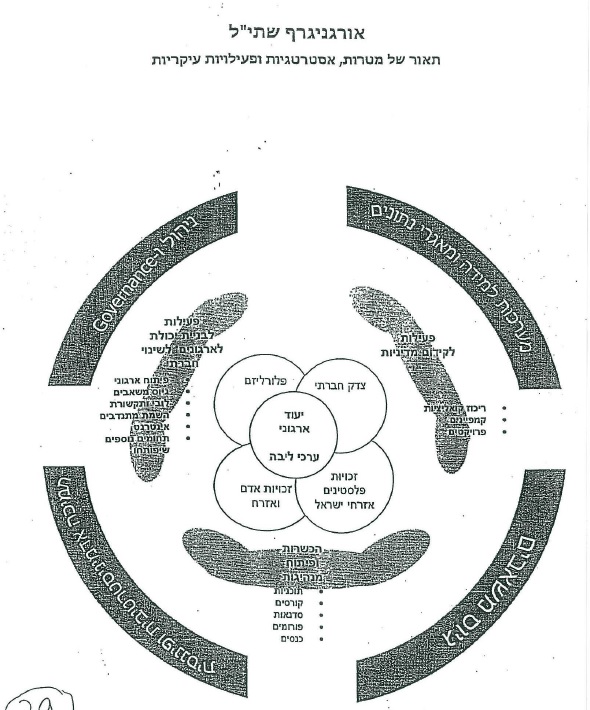 בכדי להיווכח עד כמה פעילות הארגון מסודרת להפליא, כדאי לעיין היטב בתרשים הבא, המופיע כחלק ממסמך "שתי"ל 2001 – מבנה ארגוני מוצע":
