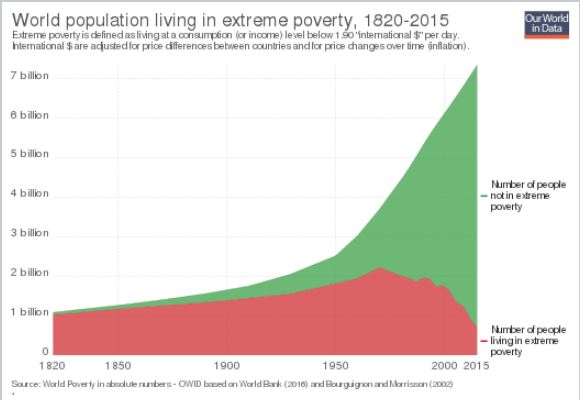 בשנת 1800, 43 אחוז מהילדים מתו לפני יום הולדתם החמישי. כיום, פחות מארבעה אחוזים. ב-1816, 0.87 אחוז מאוכלוסיית העולם חיו במשטר דמוקרטי. בשנת 2015, 56 אחוז חיו במשטר דמוקרטי. בשנת 1800, אספקת המזון לאדם ליום בצרפת, שהייתה אז אחת מהמדינות המתקדמות בעולם, הייתה בסה"כ 1,864 קלוריות ליום. בשנת 2013, אספקת המזון לאדם ליום באפריקה, היבשת הענייה בעולם, הגיעה ל-2,624 קלוריות.