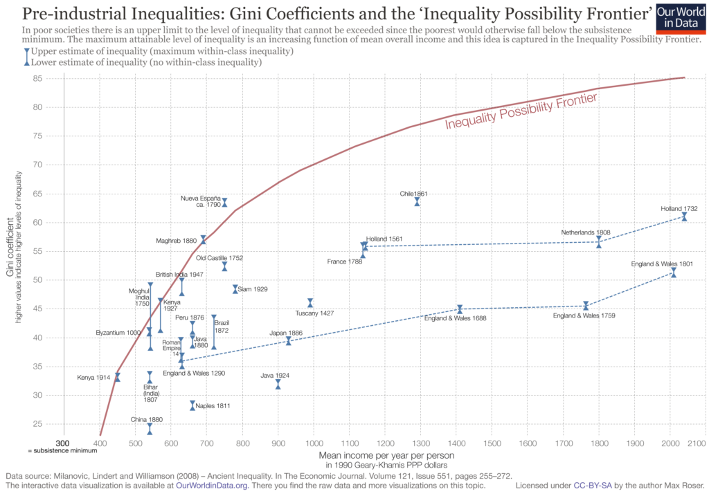 סיפורנו מתחיל עם הכנסה, שכן, כפי שהעיר בנושא הכלכלן מאוקספורד פול קולייר, מבחינה כלכלית "צמיחה היא לא מרפא-כל, אך חוסר בצמיחה הוא מחסל-כל". במשך אלפי שנים הצמיחה הייתה זניחה, אך לקראת סוף המאה ה-18 החלה להאיץ, ראשית בבריטניה ולאחר מכן בשאר חלקי העולם.