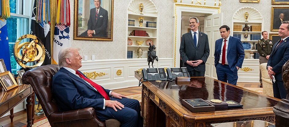 נשיא ארה"ב דונלד טראמפ וסקוט ברנס, מזכיר האוצר של ארה"ב (הראשון מימינו). יעשו את הבלתי ייאמן? תמונה: דוברות הבית הלבן.